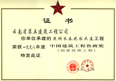 美亞大廈魯班獎狀